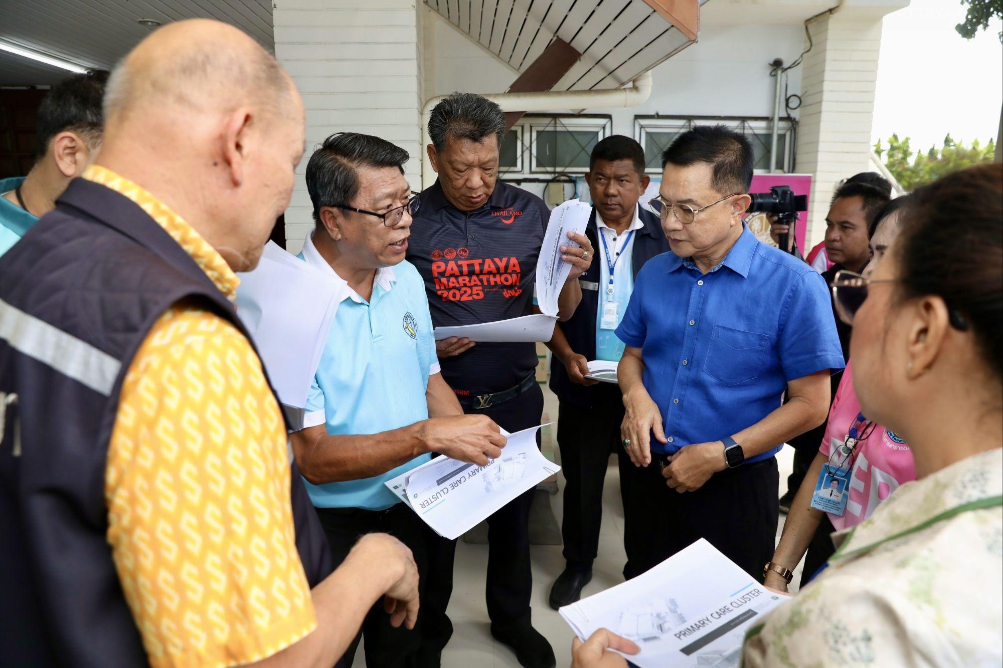 Pattaya, Thailand – Ambtenaren van de stad Pattaya, onder leiding van locoburgemeester Wuthisak Rermkijakarn en locoburgemeester Krisana Boonsawad, voerden een locatieonderzoek uit op het gemeentehuis van Jomtien om de geschiktheid voor de verbouwing tot het nieuwe Pattaya Community Medical Center (Wat Boonyakanjanaram) te beoordelen. De inspectie werd bijgewoond door Banlue Kulavanij, voorzitter van de gemeenteraad van Pattaya, permanent secretaris Kiatisak Sriwongchai, raadsleden en relevante instanties.